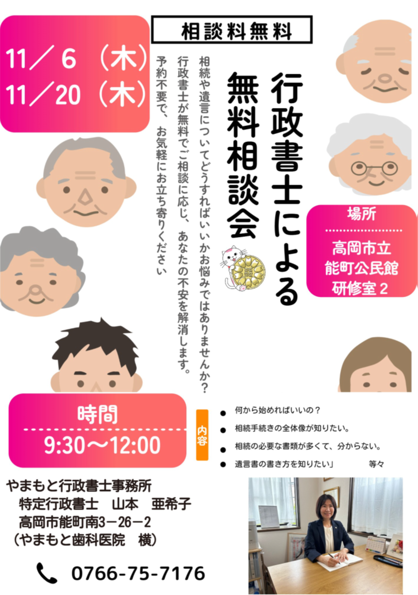 富山県高岡市のやまもと行政書士事務所へようこそ。 代表の山本 亜希子です。